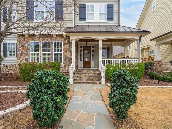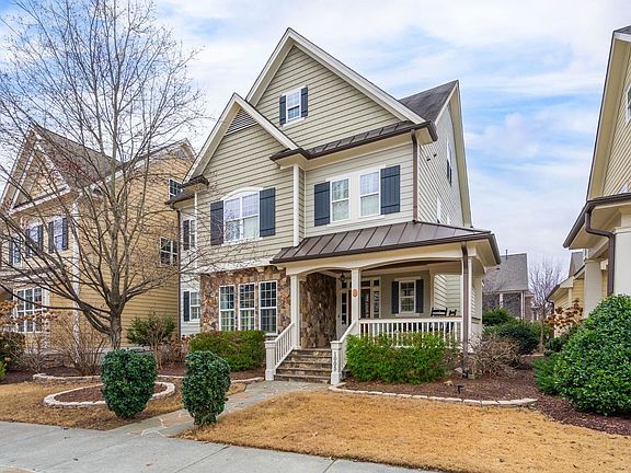 Welcome to sought after Village Square in Amberly! As you enter this CUSTOM home from the Rocking Chair front porch facing NORTH, you can't help but notice all the details and finishes...Arched Doorways, Hardwood Floors through-out the Main Fl, Kitchen Custom Cabinetry, Counter Seating, Plantation Shutters & Family Room with Built-ins on either side of the Fireplace. The Second Flr offers 4 Bdrms w/ direct access to Baths, and a large Bonus Rm. The ATTIC on Third Fl has permanent stairs and is over 1,200 Sq.Ft., Pre-plumbed ready for you to finish! Enjoy the Country Club Amenities in Amberly - 2 Swimming Pools, Clubhouse w/ full Fitness Facility, Swim Team, Dog Park & Walking Trails. Walk to shops and easy access to I-540, RDU & RTP.