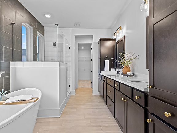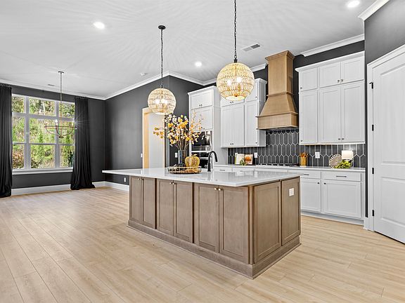 Step into elegance w/this former designer model home, thoughtfully crafted w/over $120K in luxurious upgrades. Every detail speaks sophistication, style & function w/the soaring volume ceilings & an expansive wall of windows to the striking modern stair railing & custom wall treatments. The chef’s kitchen is a true centerpiece, showcasing quartz countertops, stacked cabinetry, a designer cabinet hood, cast iron sink & an enormous island perfect for gathering. Retreat to the main floor spacious owner’s suite w/LVP flooring & spa-like bath, while guests enjoy a 1st floor BD & full BA. Upstairs the inviting bonus room is perfect for the kids or movie nights! 3 more BDs & 2 more full BAs round out the 2nd floor. A 3-car garage including a 2 car climate-controlled bay is a rare find! Outdoor living is private w/a charming covered back patio, while the porte cochere entry adds timeless curb appeal. This is more than a home—it’s a statement of refined living.