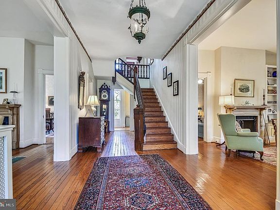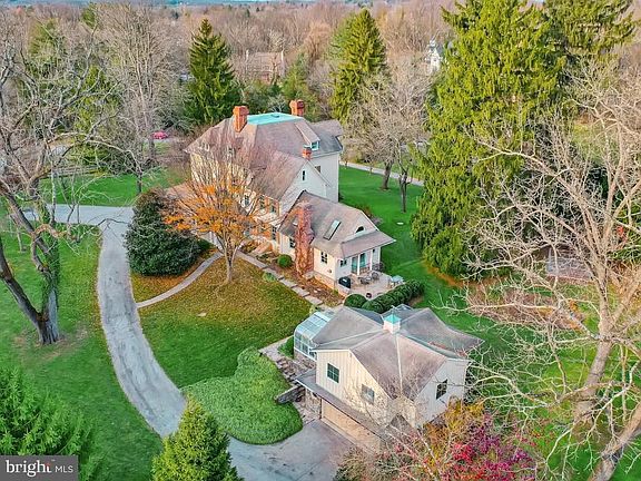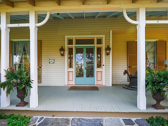 This Circa 1868 Victorian gem lies at the end of a discrete lane in Ruxton on 1.45 private acres. Period charm and craftmanship are apparent in the floor to ceiling lead glass windows, 8 fireplaces, original moldings, high ceilings, heavy panel doors and pine floors. A quintessential wrap around porch overlooks sweeping level lawns with mature landscaping and is perfect for entertaining and quiet relaxation on warm, summer evenings. Enter through century old double doors into a gracious foyer flanked by two parlors and accented by a stately 3 story staircase. Continue to a spacious dining room, library lined with bookcases and an eat-in kitchen. Completing the first floor is a sun filled vaulted family room overlooking a flagstone terrace and flower gardens. The second level includes the master bedroom and bath, 2 more generously sized bedrooms, full bath and office/craft room. A large, sunny laundry/utility room is also on this level. The third floor is unique in that it is bright and airy and includes 3 ample bedrooms, a full bath, and a walk-in cedar closet. Front and back staircases access all 3 levels. The fully finished basement has exposed stone walls and is large enough to accommodate a home office, TV area, and exercise/play areas. Built-in bookcases, closets, and 2 storage rooms add even more functionality. A detached multi story outbuilding includes a climate-controlled greenhouse and a large, architecturally interesting storage area which could be finished as a studio, apartment or office. The lower level generously accommodates 2 cars and an additional storage room. A blend of privacy with the elegance of yesteryear and the convenience of Ruxton, this property is truly a rare offering and a must-see!