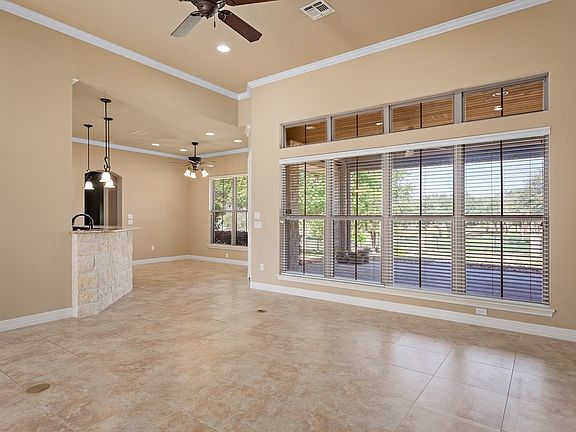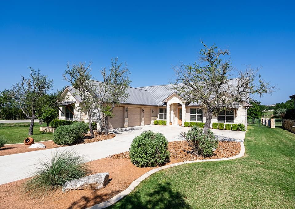 Lovely Hill Country style home overlooking the green of Hole # 1 of the Creeks course. In immaculate condition, this home features metal roof, plantation shutters, flagstone back patio and front porch, huge master bath and closet, remote shades on back patio, air-conditioned workshop, office space, or craft room in the garage, 2 1/2 car garage with separate door for golf cart, fenced yard with mature landscaping, sink, built in ironing board and extra fridge in laundry room. Step out to the back patio and you won't want to leave the amazing water, golf course and hill country views. Comanche Trace is a master-planned community with many amenities including private Guadalupe River park, walking trails, community garden, stocked fishing lake and more! Golf and Social Memberships are available for a separate fee. Come for the views and stay for the lifestyle!