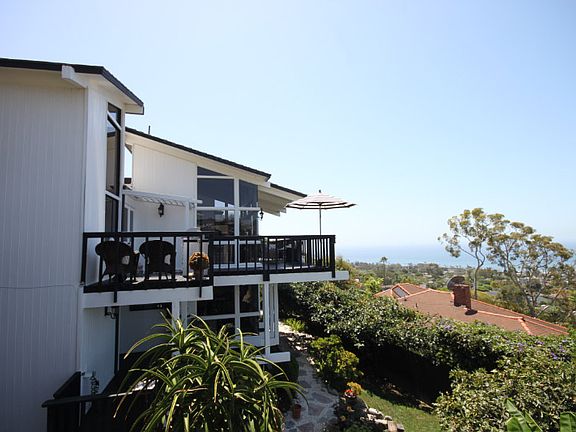 Sweeping coastline ocean views from every room highlight this stunning indoor outdoor home perched just above the village. On the main level offers gourmet kitchen with white cabinetry, granite countertops and double stainless steel appliances. Living and dining rooms feature wrap around decks with picture frame windows taking full advantage of the stunning coastal and Catalina views. Master bedroom suite is complete with custom walk in closets, private view deck with gas fireplace an...