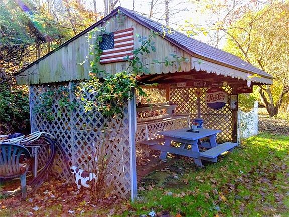 This cottage home is a delight to view. Many hand crafted touches. The walk out lower level is completely finished and includes full bath, laundry room with two large storage closets, a large "L" shaped family room with a Heatilator fireplace. It can easily be repurposed to be a bedroom if needed, and a charming fully-equipped eat -in kitchen with generous pantry. the entry from the large covered patio is a delightful stone-faced area for mild weather. The main living area contains a full kitchen/dining room combination, a living room with brick area that backs to chimney if a fireplace or stove is desired, two nice sized bedrooms, and a comfortable sunporch with electric fireplace to take the chill off when needed. there is an in ground swimming pool that has not been utilized for some time and is treated "as is", beautiful grounds, a gazebo, a picnic pavilion, a two car garage and space to park four additional vehicles. Additional lot included in sale966-C-0024