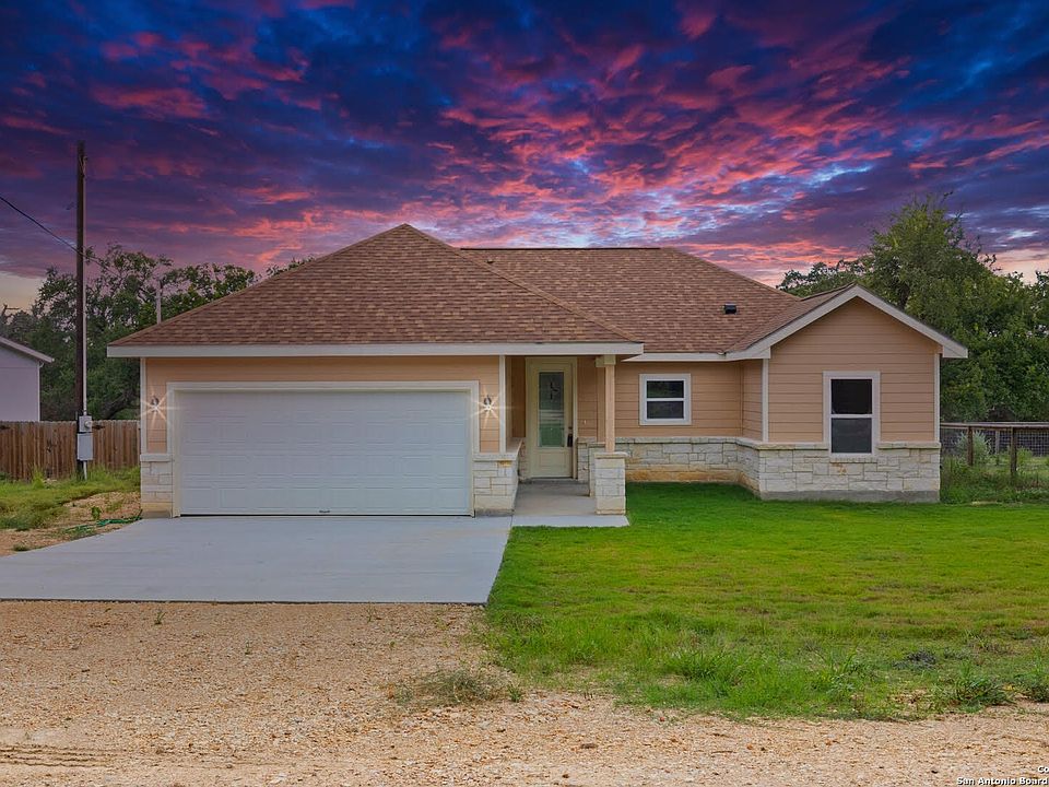 *ZERO DOWN WITH USDA FINANCING * NEW BUILD* Home sits on a little Over a Quarter Acre Located in Spring Branch TX * 3 Bedroom and 2 full Bathrooms with Ample space for your family or guests. Sleek finishes and clean lines create a stylish atmosphere. Home Features include -Kitchen Island, custom cabinets and quartz countertops, High ceilings, Epoxy flooring throughout home , standing shower in Master Bedroom and Double Vanity with a Walk-in Closet , 2 car garage. Schedule today and don't miss out .