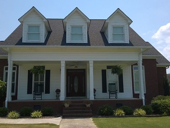 Full brick traditional home inside Arab City Limits. Professional landscaped yard on a nice corner lot with vinyl privacy fencing. In ground pool with courtyard setting and patio is a great entertaining spot and a gorgeous view from the sunroom and family room. Extensive molding in this custom home! 3 bedrooms 3 baths on main level with eat in kitchen, formal dining, family and sunroom. Plantation shutters throughout! Upstairs is rec room/4th bedroom. Large covered front porch on a corner lot! Side entry garage, sidewalks, sprinkler system, curb ad gutter streets and underground utilities. A definite must see property!