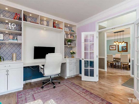 Everything you've been waiting for: designer quality finishes, functional updates (new roof & lower level HVAC), cul-de-sac/fenced-in/wooded lot in ideal Apex location-minutes from downtown Apex! New luxury flooring thru main floor. Private study w/ custom built-ins. Updated kitchen w/ granite, subway tile bsplash, SS appliances-opens to sunny b'fast nook & lovely family room w/ tile surround gas FP & shiplap wall. Master w/ double tray ceiling, WIC, & updated bath. 4th bedroom could be large bonus. WOW!
