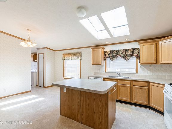 Enjoy contemporary comfort and style in this well-taken-care of home! With a modern design, this home features vaulted ceilings that create an open and airy atmosphere - skylights that allow natural light and create a welcoming ambiance - and an open floorplan that combines the living room with the heart of the home - the kitchen - which features eating space, a large island perfect for meal prep or casual dining and plenty of cabinets for all of your kitchen gadgets. With a master suite featuring a private bath and walk-in closet and two additional bedrooms that share a 2nd full bathroom, this home offers plenty of room for both relaxation and functionality. Bonus - Enjoy the convenience of a brand-new 2-car garage - built in 2023. Double Hung Windows & Extra Insulated Exterior House Wrap....that means Low Energy Bills! Located just minutes from shopping and dining options, you'll have everything you need right at your fingertips. You Deserve This!