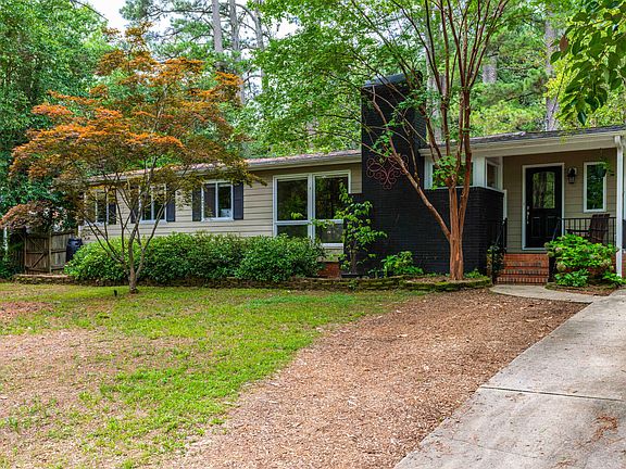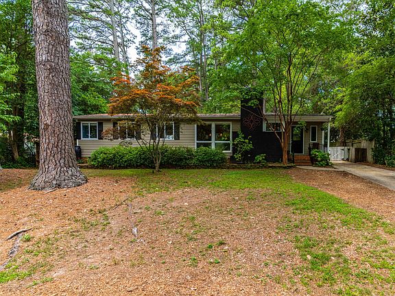 This ready-to-move-in, mid-century modern single-story house is ideally situated near Whole Foods/Ridgewood Shopping Center and Meredith College. It offers 3 bedrooms, 2 bathrooms, and proximity to NCSU, the Village, downtown Raleigh, and RDU airport. The residence features hardwood flooring, an open layout, a bright interior, granite countertops, a wine refrigerator, a gas stove, a tiled backsplash, and gorgeous cabinetry. The master suite boasts a vaulted ceiling, walk-in wardrobe, deck access, and an en suite with a double vanity and a spacious fully-tiled shower. Externally, the property includes a vast deck, a storage shed, and a fenced-in backyard with firepit, all enhanced by decorative lighting in the front yard.
