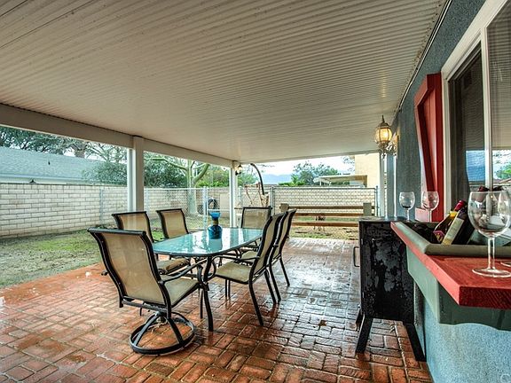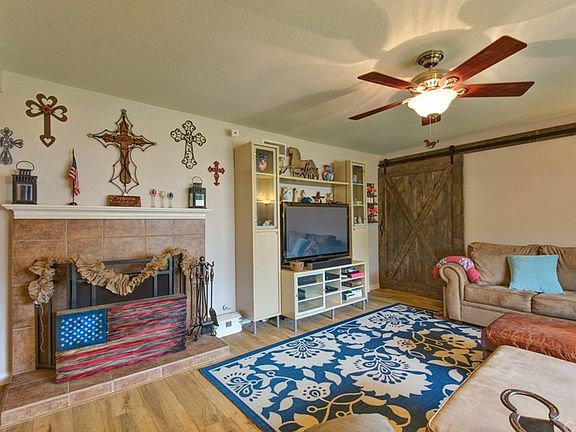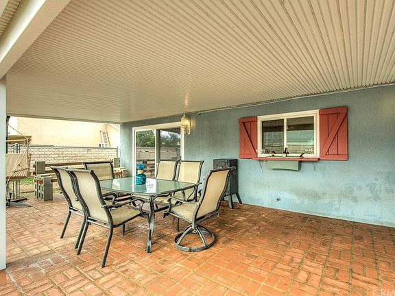 This all American red, white and blue single story home is located in a quiet neighborhood in Corona and is warm and inviting. The Kitchen has upgraded cabinets and tile counters. Wood tile floors throughout with brick fireplace in living room and newer bedroom carpets with a Custom Barn door leading to master bedroom. The master suite bath is completely remodeled with new tile in shower with large seat, new vanity and double sinks. New double pane windows throughout and new HVAC unit. The kitchen is open to the dining area and bonus room. The large covered alumawood patio with brick deck overlooks the backyard with the dog run and fire pit and tire swing. There is an attached 2 car garage. This home is move in ready.