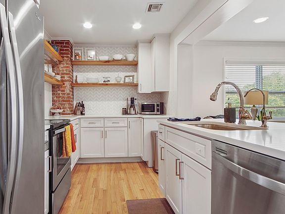 'CURRENTLY UNDER CONTRACT, SELLER WILL CONSIDER BACKUP OFFERS' The perfect mix of old cove charm with modern upgrades. This cute brick home has everything you need to make the family feel right at home. When you walk into the home you are greeted with bright natural light reflecting off the hardwood floors. The renovated kitchen boasts stainless steel Whirlpool appliances, a spacious island, as well as exposed brick and wooden shelves that perfectly tie the room together. The kitchen flows directly into the living room with a white brick fireplace and wood mantle. The primary bedroom is very large with many windows wrapping around the room. There is a walk-in closet, laundry room (washer & dryer do not convey), and bathroom all connected to the primary. The ensuite bathroom has dual vanity with a stylish backsplash. The other 3 bedrooms are located down the hall by the other full bathroom. All are comfortable sizes for bedrooms, office, play room, etc! This house features original and newer hardwood flooring, as well as LVP in the primary bedroom and tile in the bathrooms.
