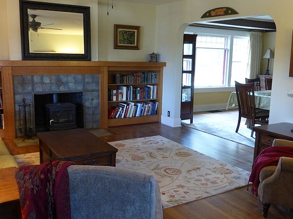 This classic craftsman home is in the heart of the desirable Craigs Hill neighborhood surrounded by lovely older homes. While retaining many touches from the early days of the house (some original light fixtures, leaded glass windows in the entry and entry closet, woodwork around the doors/windows, etc., the house has many updated features including a completely remodeled, modern kitchen (granite counter tops, stainless appliances and custom built cabinetry), three bathrooms (3/4 bath on the 2nd floor - remodeled, full bath on the main floor - remodeled, 1/2 bath in the basement), formal dining room, living room with fireplace (Jotul wood stove), enclosed front porch (a sunny warm place in the Spring and Fall), breakfast nook off of the kitchen, a vintage knotty pine paneled basement mother-in-law apartment (used as a TV room, rec room and guest room) with an outside entrance and a freestanding gas stove, two bedrooms on the main floor and three bedrooms on the 2nd floor, a spacious laundry room in the basement with a laundry chute from the main floor, hardwood oak floors throughout most of the main floor and upstairs, many built-in cabinets and storage spaces, central forced air furnace (natural gas) and A/C, a large two-car carport and enclosed storage area, all appliances included (washer/dryer, kitchen appliances in kitchen and kitchenette in basement), new roof and electrical panel, on 1 1/2 lots with shaded, wind-protected yard. Shown by appointment only. Prequalified buyers preferred, but happy to show house to any interested parties.