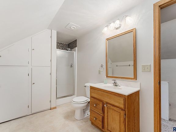 Small town living on a huge lot! Located in Dell Rapids this 3 bedroom and 2 bath home offers great space! The main floor has 1 bedroom, a bathroom, kitchen and open dining space, and two living rooms. Upstairs there is 2 more bedrooms and a bathroom. The basement offers some more finished space. The yard is huge and has a detached 2 stall garage and separate shop!