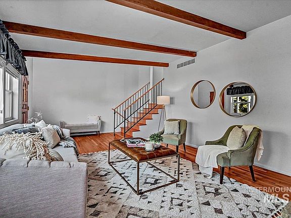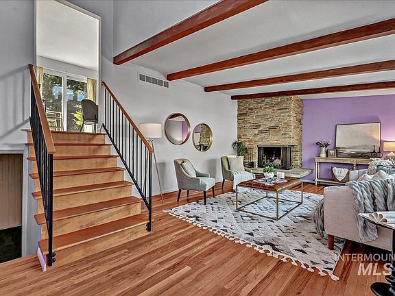 Perched in the coveted Aldape Cove neighborhood this split-level charmer offers rare unobstructed views of the Boise skyline and State Capitol. Step outside and enjoy Military Reserve, Eagle Ridge Trailhead, Fort Boise Dog Park, and Boise Bike Park just moments away. Inside, find oak hardwood floors, a remodeled upstairs bathroom, and key updates including HVAC (2017) and metal roof (2020). A private backyard with a wood deck is perfect for relaxing while soaking in the views. With 0.22 acres, the opportunities are endless: house-hack the lower level, add bedrooms, or build your dream home. This home blends mid-century character, modern updates, and an unbeatable foothills lifestyle all minutes from downtown! Downtown Views. Foothills Lifestyle. Endless Potential.