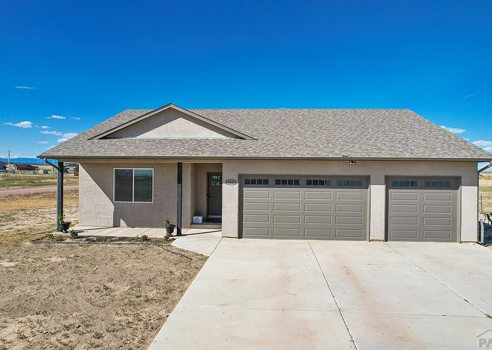 Why wait to build when you can buy this like new home! This beautiful well maintained 3 bed/2 bath stucco home with a 3 car attached garage is on 1.25 acres. This spacious ranch-style home has an open floor plan with soaring vaulted ceilings. The gourmet kitchen has a fantastic island, farm-style sink, gas stove, and a beautiful tiled backsplash. It has all stainless steel appliances plus a large pantry with a frosted pantry door. Walk out to the covered patio and enjoy the private backyard and scenic views. The yard is ready for you to make your own and turn it into your own oasis. Back inside you will find the huge master bedroom which features vaulted ceilings, a walk-in closet, an adjoining bathroom with double sinks, and a tiled walk-in shower. Easy commute to Colorado Springs, Pueblo's Riverwalk, and Fort Carson. Come see what all the fuss is about!