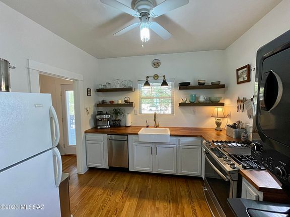 Charming, remodeled, University area 2 Br & 1 Ba.Remodeled 1930's 2 plus 1 charmer one mile from the university. 3.9KW Solar system lease with Solar City, 5526.4 KWH generated in 2022. Water Softener, Reverse Osmosis System. Remodeled kitchen and bathroom with pedestal tub and Restoration Hardware lighting. Antique chandelier in dining room. All new windows and blinds. Haier dishwasher. Security system in place. New disposal. AC AND Evaporative Cooling. Hardwood floors throughout. 6 foot perimeter wall with electric remote operated gates on Park Avenue and alley. Drip irrigation on trees and vines. Huge carport. Lots of storage in detached former one car garage. Close to Mountain Avenue Bike Path. Carport is not permitted. Seller is licensed AZ real estate broker.