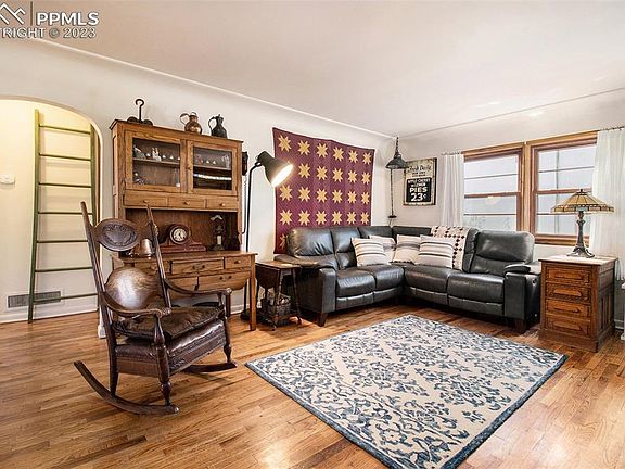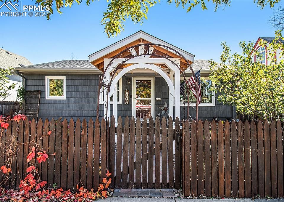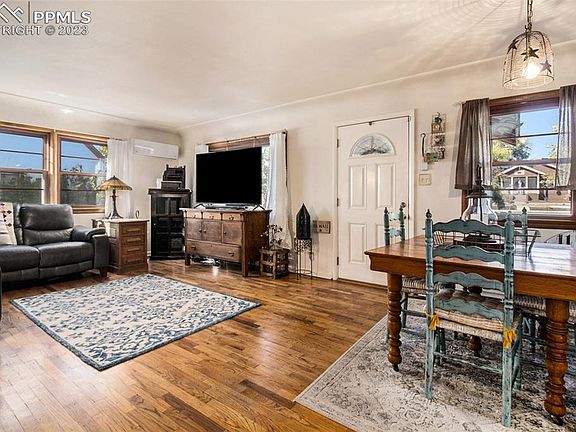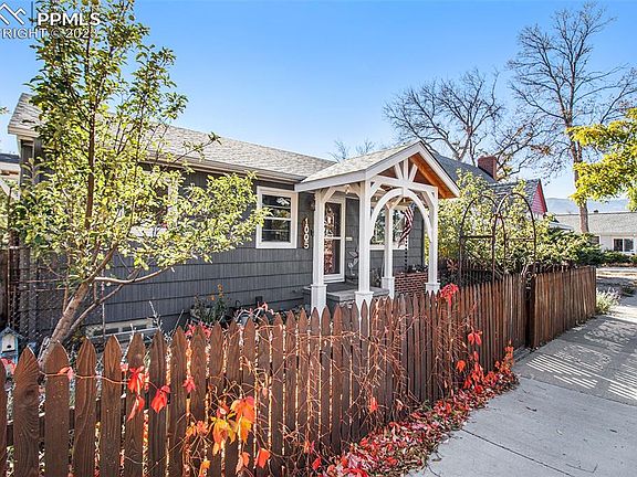 This charming move in ready Ranch home is located within a mile of Memorial Park, Memorial Hospital, the Olympic training Center and downtown Colorado Springs. As you enter the front doors through the gorgeous portico, you will enter the main living area which has beautiful cove ceilings and archways, living room with an ac unit, dining room and 2 bedrooms, all with original hardwood flooring. The kitchen features wood countertops, gas stove, stainless steel appliances, and a gorgeous farmhouse sink. The luxuriant bathroom was remodeled Dec 2021. The finished basement includes two bedrooms, an office and a laundry room that has a walk out to the backyard. The quaint backyard has a beautiful pergola and harvest table to enjoy meals and a cozy fire pit to roast marshmallows on those gorgeous summer nights. The backyard has two storage sheds, a covered porch and a driveway to park your cars or an RV. New windows installed throughout the home, 2 new storm doors and the house and shed were painted in 2016. This home has SOLAR, which was installed in Aug 2021!!! Sellers also had the old clay sewer cleaned out and cured with new lining in April 2022. Nest thermostat installed July 2022!
