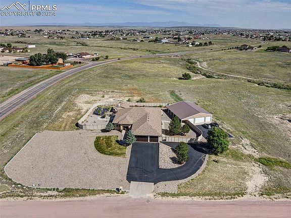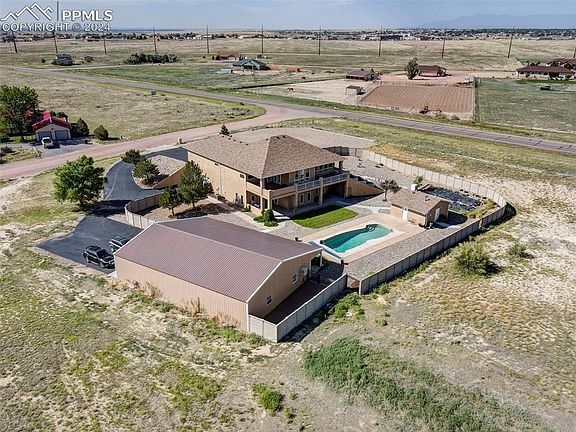 Discover your Colorado dream home with a charming guest/pool house. The driveway to the home and the pole barn recently resurfaced and 60K of landscape rock and cement stairs into the landscape. This custom ranch-style home features 4 spacious bedrooms, 3 luxurious bathrooms, and an impressive 5-car garage. This residence boasts comfort and elegance with a total living space of 5,252 square feet. Enjoy breathtaking mountain views from two covered upper decks and two lower-covered patios, perfect for relaxing or entertaining. The home includes a walkout basement that seamlessly blends indoor and outdoor living. Set on a generous 3.55-acre lot, the property also features a 40x60 pole barn, providing ample space for storage or hobbies. This home is a true Colorado gem, offering the perfect blend of tranquility and modern conveniences. Don’t miss the opportunity to make this exceptional property your own! The main floor has a huge 3-car garage, and the basement living area has a separate, oversized 2-car garage. The lower level is separated from the main level and in the past, has been rented monthly, and Air Bnb.