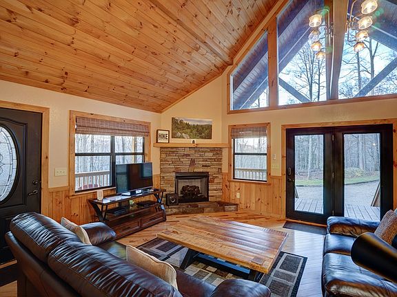 2 bedroom 2 bath cabin the woods being offering fully furnished & within minutes to downtown Bryson City & all the area outdoor attractions......all the cabin needs is you and your toothbrush! Located in a nice rental cabin community, this successful vacation rental is only a few years old & has been well maintained. Upon entering, you are great by the XL great room featuring hardwood floors, a stacked stone gas-log fireplace, vaulted tongue and groove ceilings & soaring windows to bring the outdoors inside! Spacious kitchen with granite, SS appliances, ample cabinet & counterspace with breakfast bar adjoins the dining area. Main level bedroom is adjacent to the main level full bath and laundry area. Upstairs hosts the VL loft bedroom complete with ensuite bath and walk-in closet. Exterior features a wrap around covered porch/deck complete with an outdoor living area that includes seating, a grill area and a nice hot tub to enjoy a glass of wine at the end of the day. Property has high-speed Balsam West internet, lots of parking, a nice flat yard, private firepit & long range winter views with privacy in the summer! Sold furnished with the exception of a few personal items!