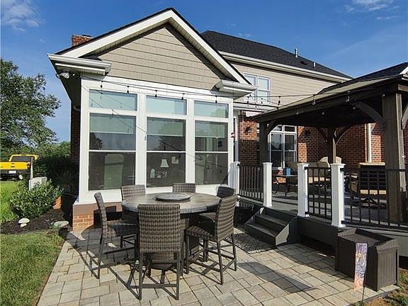 Sunrises from the front porch and spectacular sunsets from the back deck are just two of the great things about this premium Salem Glen golf course lot. You’ll literally be steps away from either the first tee or the clubhouse. Enjoy coffee and breakfast on the 20'x20' Trex deck or 13'x13' paver patio or in the four-season heated/cooled sunroom. The first floor primary bedroom suite features an extra-large walk in closet, two separate vanities, jetted tub and large walk-in shower. The open floor plan features a dining room, great room and a spacious kitchen with granite countertops, newer appliances, breakfast nook and pantry. A large 3-panel glass slider opens to the four-season sunroom. The upstairs features 2 large bedrooms with a buddy bath and a large room over the garage that could be a fourth bedroom or family room or office. The large 2-car garage is wide enough for two cars and a golf cart and also has a 10'x10' storage closet.