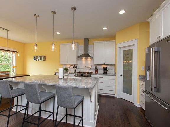 This 5 bedroom two and a half bath craftsman style home is like none other! Upon entering you'll love the hand scraped wood floors that flow throughout the open first floor living area. Many nights will be spent in front of the stone fireplace with its handcrafted mantle after cooking up a feast in the gourmet kitchen. This kitchen has been upgraded with stainless steel Frigidaire Professional Series appliances, soft close hinges, beautiful oversized granite, large pantry, and farmhouse sink. Enjoy meals with friends and family just off the kitchen in the dining area or large deck that both overlook your spacious private tree-lined lot. The upgrades continue into the first floor master with en suite bathroom.