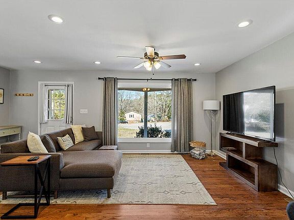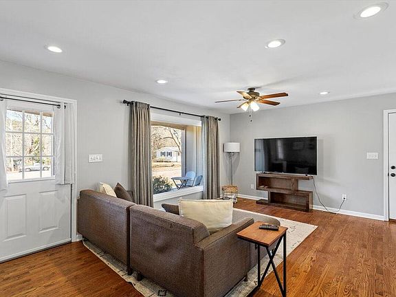 This beautifully updated 3-bedroom brick Ranch home combines timeless charm with modern upgrades--a rare find in an established neighborhood. Nestled on a cul-de-sac lot, this home boasts tons of curb appeal with a welcoming rocking chair front porch. Step inside to a highly sought-after open-concept design featuring hardwood flooring, shiplap accents, and stylish fixtures throughout. The sun-filled Family Room flows seamlessly into the Dining Room and eye-catching Kitchen, which showcases white cabinetry, a stylish tile backsplash, Granite counters, SS appliances, and raised bar seating perfect for entertaining and everyday living. A sliding barn door off the Kitchen reveals the convenient laundry closet. The spacious Primary Suite features two closets and a beautifully designed en-suite bath with a dual vanity and walk-in tiled shower. Two additional bedrooms share a fully modernized bath embellished with shiplap accent walls. Outside, enjoy a fenced backyard with mature trees, tons of patio space, and room for outdoor activities. Additional highlights include a one-car Garage with a storage area and a prime location just minutes from Crabtree Creek Greenway Trail and downtown Raleigh's vibrant scene of local shops, breweries, unique dining venues, and global eateries.