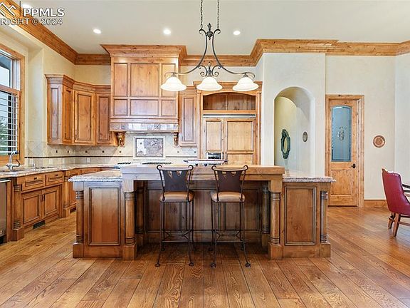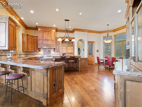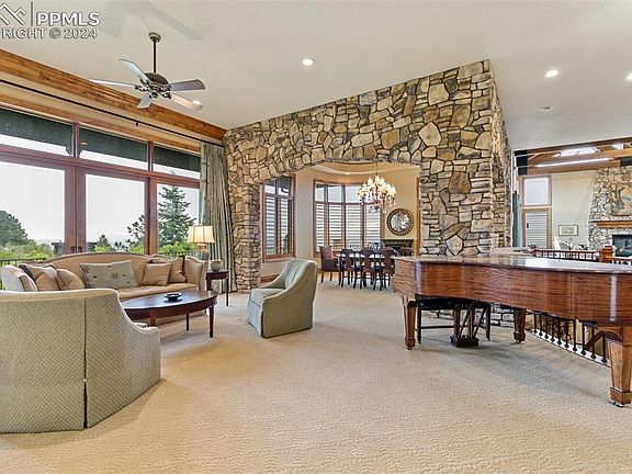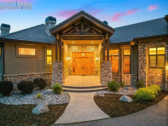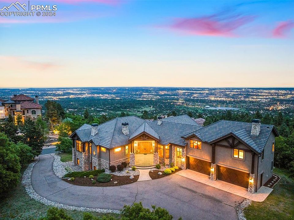 Mountains and nature harmonize with this custom home set in the private Broadmoor Resort Community. A stunning gated community behind the Broadmoor Hotel. This mountain villa tucked into the hillside overlooks the city of Colorado Springs, the foothills of the Rockies and the plains beyond. A sense of space and custom interior design incorporates both casual and formal elements. Exceptional architecture, fine craftsmanship and exquisite materials blend to create this one-of-a-kind property. The spacious but well-scaled rooms flowing from the grand foyer all lead to an outdoor sitting and entertainment area. The gourmet kitchen open to the great room features an eat in area, large pantry, island, and Viking appliances. The main level primary bedroom has a spa like bathroom, and a large walk-in closet. Additionally, the main level has a custom laundry room and mud room that leads to the spacious four car garage and upper level. The upper-level suite features a large ensuite bedroom with attached 5- piece bath and a second ensuite bedroom. The lower-level walks out to a large covered entertaining area and uncovered outdoor sitting area with a fireplace. There is a large great room with a custom kitchen/bar, theater room and four additional garden level ensuite bedrooms. The outside landscaping is mature and designed for minimal maintenance. An exclusive gated community with the option to join the Broadmoor Golf Club and Spa.