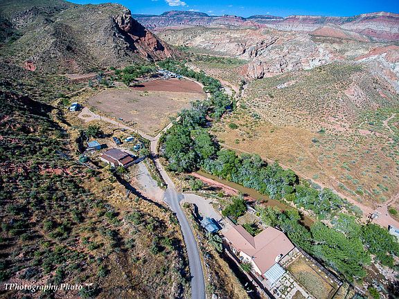 Incredible opportunity to own a secluded ranch on 8.60 acres with creek running through it. Property features private gated entrance, 1425 sqft 2 bed/2.5 bath house, 2 bay auto shop with lift and private gate, mobile home, fenced grazing fields. Endless possibilities! Breathtaking Red Mountain Views! Zoned MU-20