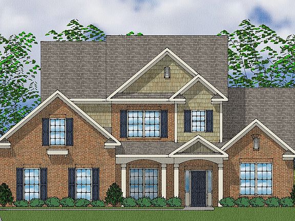 The Bridges II plan features four bedrooms and two-and-one-half bathrooms in a two-story plan with primary suite downstairs! Gorgeous two-story entry is connected to the formal dining room with coffered ceiling, and leads directly to the open family room with gas fireplace. The kitchen is open to family room and breakfast area with access to an outdoor patio and features a large island and walk-in pantry. Entry from the garage leads to a powder room and laundry room. The primary suite features a tray ceiling, sitting room, spacious walk-in closet and luxury tub. Secondary bedrooms are located upstairs and all feature walk-in closets. A bonus room and flex room that could be used as a fifth bedroom are also on the second level. An optional sunroom, formal living room, guest suite and 3-car garage are also available.