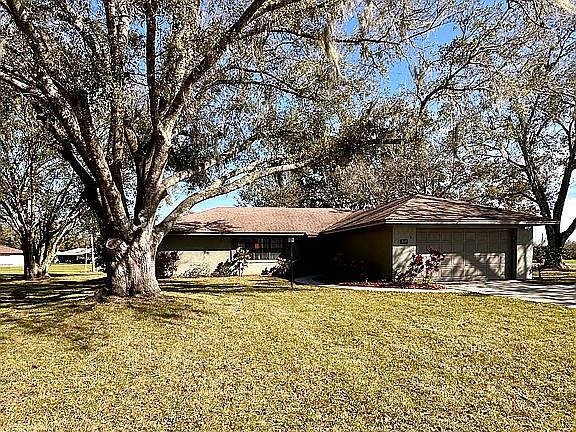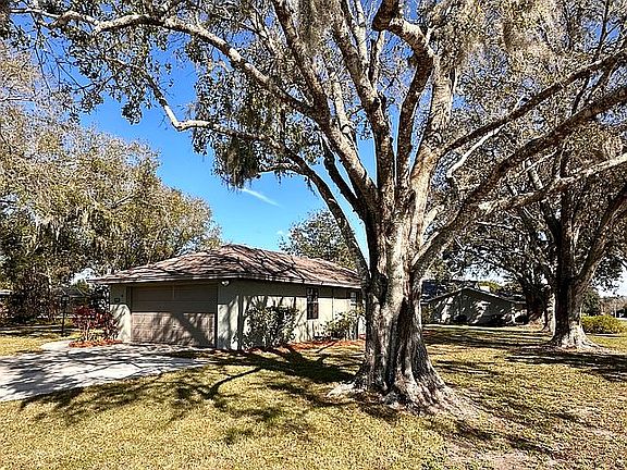 It has 3 bedrooms and 2 bathrooms with a split floor plan. Two large living/dining areas. Very workable kitchen featuring a small bar and pantry closet. Tile floors throughout and BRAND NEW Air Conditioner. Mud/laundry area located through garage entry from 2 car garage. Garage features brand new electric opener. 14x 20 screened in porch on the back of the home nestled under the oaks. 8x12 storage building with new siding. If you are looking for a safe, convenient neighborhood for your young family or for retirement, this home would fit all your needs!