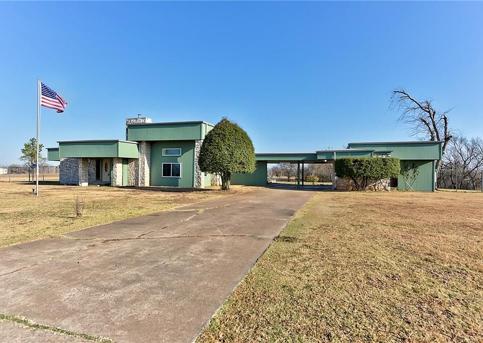 In town acreage! This contemporary home sits on 1.75 acres & offers 3 beds, 2 baths, 2 living rooms, 2 car garage w shelter & extra covered parking. This home offers a ton of windows, high ceilings and flexible living space for room for a home office, formal dining, 2nd living room or game room, a lot of room outside for a pool, garden or a shop. Primary bedroom has a remodeled full bath attached with walk-in closet. Home also offers plenty of storage for linens, coats and pantry. Kitchen is open to 2nd living room & looks onto the backyard with breakfast bar and small kitchen dining to the side. 2nd living room is a wall of windows with a sliding door leading to back yard. Front main living room has high ceilings, a freestanding wood fireplace with blower motor and some great lighting. Yard is completely fenced and is a blank slate to do what you want. Location is great with easy commute to University, Tinker Air Force Base, Central Norman or I-35 to OKC. Don't miss out seeing.