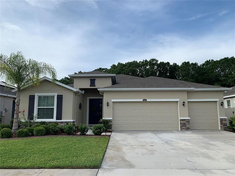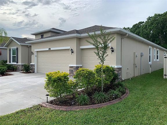 Come check out this 4BR/3bath/3 car garage home in the highly sought after Union Park Subdivision! This spacious open floor plan sits in the SE corner of the subdivision and backs up to a pond with a conservation area backdrop for complete privacy! The inviting foyer with a tray ceiling leads to a bright, naturally lit kitchen and living room that extends to the oversized screened in lanai, perfect for enjoying the outdoors or a cookout. The kitchen features stainless steel appliances, center island, abundance of cabinet space, pantry and a dining nook. This home comes with all of the appliances to include a garbage disposal and the washer and dryer. The huge master bedroom is located at the rear of the home for added privacy and features a trey ceiling, two walk-in closets, dual sinks, garden tub and separate walk-in shower. The community offers a resort style swimming pool with a splash pad, fitness center, clubhouse, dog park and miles of nature trails. Located near I-75, shopping, restaurants, hospitals, Tampa and a 99k square foot indoor sports recreation facility! Don't miss this one!