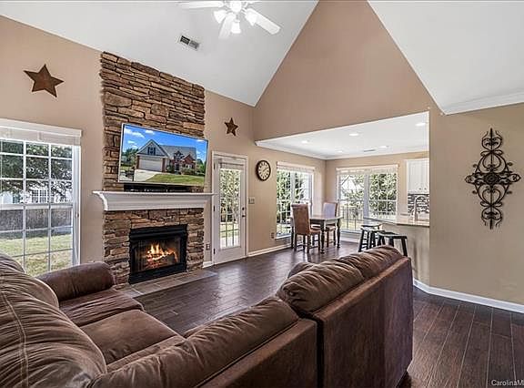Stunning Home in Highly Sought After Community in Indian Trail on a Cul-de-sac lot with Upgrades Galore. Beautiful, Updated Chefâs Dream Kitchen with White Cabinets, Stainless Steel Appliances, Tiled Backsplash, Granite Counters and Breakfast Bar. Stunning 2 Story Great Room with Stunning Stone Fireplace & Beautiful Floors. Large Dining Room or Office with All Moldings & Stunning Floors. Huge Master on the Main Floor with Tray Ceiling & Beautiful View of the Backyard Oasis. 2 More Bedrooms on 2nd Floor plus a Huge Bonus Room or 4th Bedroom. Backyard Oasis is Picture Perfect with Different Areas to relax and enjoy with Patio, Large Grass Areas & Trees for privacy. Large Storage Shed conveys plus 2 Hammock posts convey. Community has Pool, Playground and several large ponds & Lake which makes this a Beautiful Community.