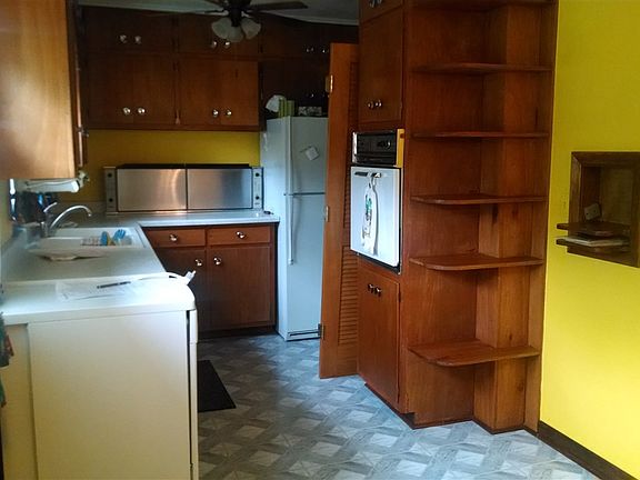 Owner states there is hardwood under carpeting on main floor. Unusual countertop foldup cooktop is original with the home. Structural pieces for cooktop are difficult to find according to owner. There was a fire in basement in 1988 at which time furnace was replaced. All appliances in as-is condition - no warranties