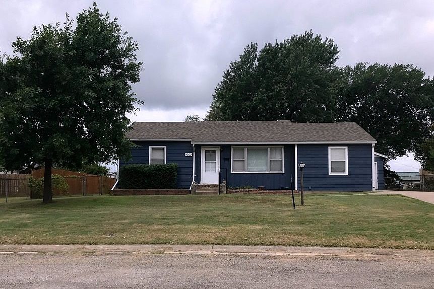 Situated on a large spacious lot. Addition in recent years includes an extended living/dining & sunroom. Many white cabinets in the kitchen. Hardwood floors in one bedroom, (possibly through the house) carpet in living/dining with exception of kitchen. Storm shelter inside of attached garage & large backyard. This is clean and ready to move into! Seller is MOTIVATED!!