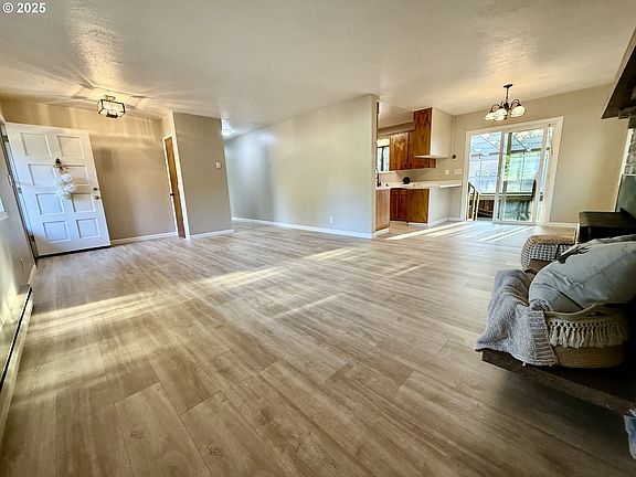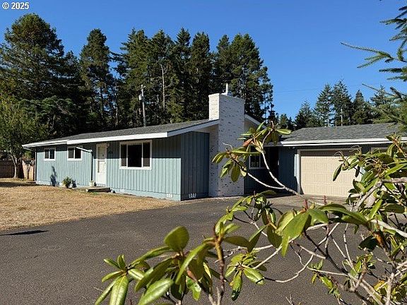 Welcome to this turn key one level home in the heart of Dune country. A German Schmear chimney adds warmth and character to this freshly updated and well laid out with 3 bedroom 1 bath home. Living area has large windows that drenched the home with natural light. Cozy up to the crackling fire this winter. Dining area features a sliding glass door to the sunroom and is open to the kitchen. This delightful culinary space offers newly updated quartz countertop and warm wood cabinets making this space the heart of the home. Kitchen views into the sunroom adding soft natural lighting, this is a space you will want to spend time in. Bathroom includes walk-in shower with 2 massage jets, waterfall glass, new vanity with quartz top. There is room to entertain out back in the enclosed all seasons room and expansive deck. The large sunroom can be enjoyed year round, great for a greenhouse or an indoor play area out of the rain. Extra deep 2 car garage is the perfect place for vehicles, hobbies, plus a large workshop area. The garage previously set up for woodworking, cabinet drawer and benches line the wall for storage. There is a roughed in bathroom in the garage that can be finished. There is room for a side by side if you want to explore the nearby dunes. 2025 new updates include: New roof, Luxury vinyl plank flooring throughout and carpet in the bedrooms, Quartz kitchen counters, Bathroom Vanity, fixtures, All fresh Ext & interior paint, Electric panel was updated 2015. Raised beds and flowerbeds boarding the home with fresh mulch awaiting you to design the outdoor space. Conveniently location close to Oregon Dunes Nat Rec Area, From this home you can drive ATV's to the dunes. 20 mins to Bay Area Hospital and shopping and Beaches.