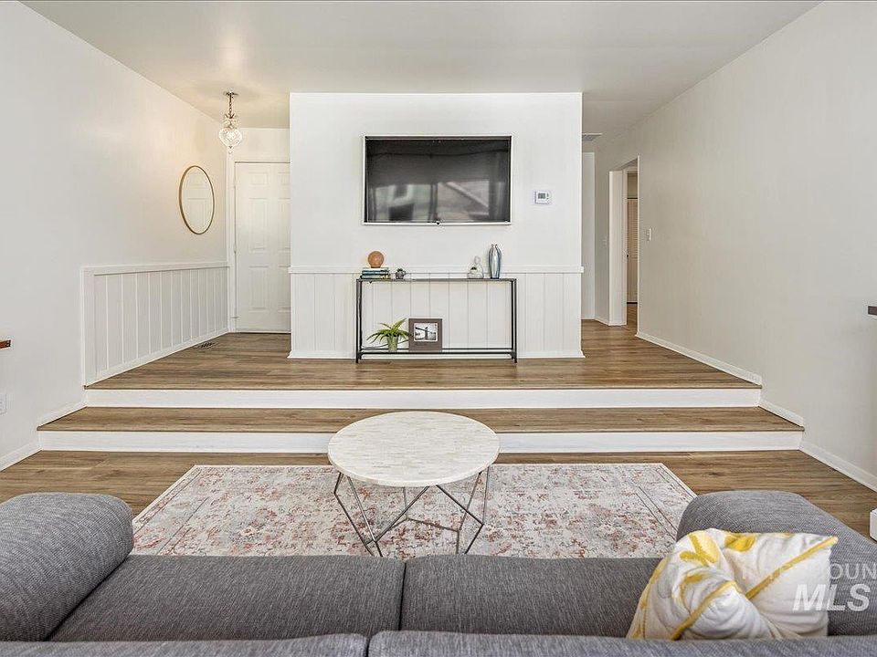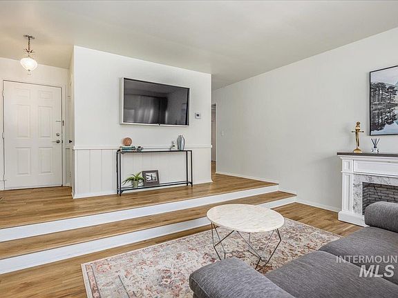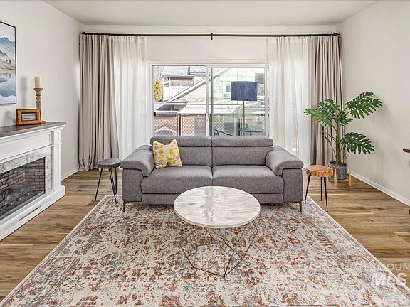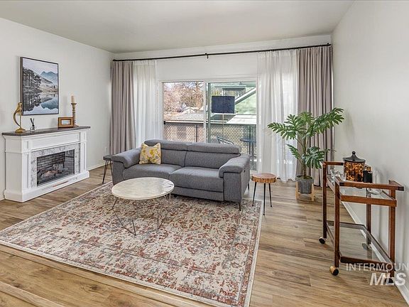 One of the most desirable locations in all of Boise... welcome to the North End, on the edge of downtown Boise! All the updates you could ask for. With mid-century modern touches, this condo invites you into a large living room with new LVP flooring + bright light through sliding glass doors to a private, covered 16 foot balcony. Cozy kitchen with open shelving, sleek stainless steel LG appliances (2021) + an all-in-one washer dryer (2021). Remodeled bathroom features decorative wood paneling, new vanity, flooring + shower acrylic. Fresh interior paint throughout. Right across the street from the Boise Co-Op & blocks from Hyde Park, Camel's Back Park + downtown Boise. Unit comes with a designated parking spot & 5x5 ft storage unit. Building offers a laundry room with coin operated machines. HOA covers water, sewer, trash & exterior maintenance.