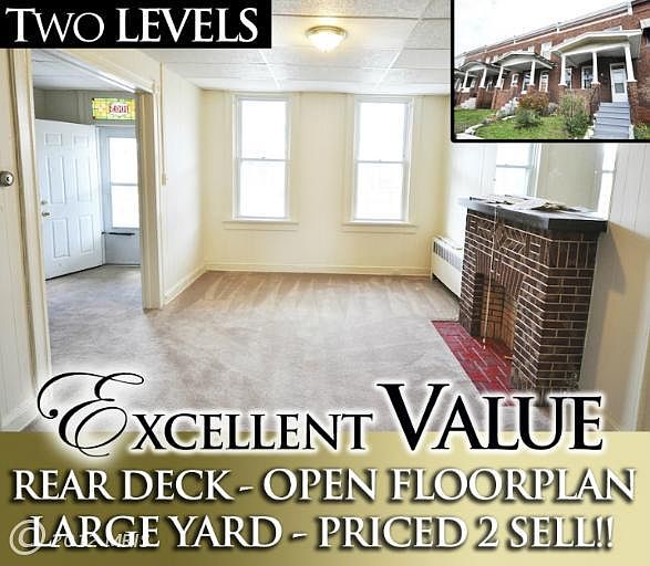 WHY RENT? OWN THIS AFFORDABLE ROWHOME WITH 3 FINISHED LEVELS! Spacious living room w/ decorative fireplace, separate dining room, updated kitchen, half bath, 3 bedrooms and 1 full bath on upper level, large unfinished basement is perfect for storage or finish for more living space. Large rear patio.