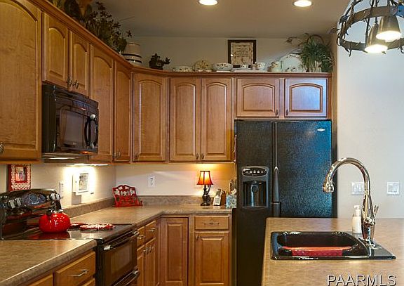 Beautiful Upgraded StoneRidge Spanish Laguna Plan! 2110 SqFt, 3BD/2BA/2GAR + Formal Dining Room + AZ Room, Tiled Foyer Entrance, Kitchen w/Maple Cabinetry, Lrg Island, Pantry, Pull out Shelves & Trash, Designer Lighting, Iron Pot Rack, Koehler Sink, Upgraded Appliances - Double Oven, Convection Microwave + Refrigerator. GreatRoom w/ Vaulted Ceilings, Designer Entertainment Unit w/70 Flat Screen, Tiled Cozy Fireplace. AZ Room with French Doors, Built In Desk and Cabinetry. Formal Dining Room w/Upgraded Lighting, Master Bd w/Exec Height Counter, Dual Sinks, Rain Glass Enclosed Shower, Walk In Closet Built-Ins. 2nd Guest BD w/Built In Murphy Bd, To Many Upgrades to List.