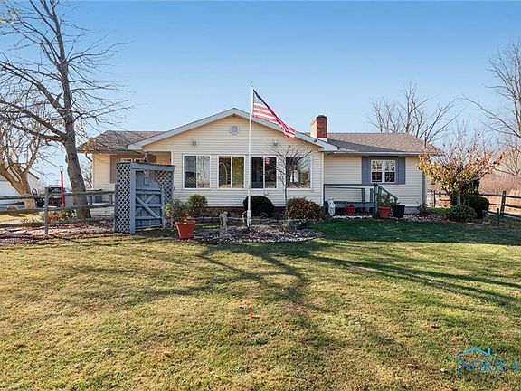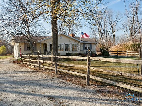 Country living at its best! 3 BR 2 bath ranch home. 1+ acre! Enclosed porch faces East. Wood deck off dining sliding doors. Family room oak wood judge's panel, woodburn fireplace, newer bath, walk in shower. Living rm cove ceiling, hardwood floors. Master bed, full bath attached. Extra large 3 car garage, concrete floor. Fenced yard in front & fenced area in back. Full basement w finished area & fireplace, tile floor in kitchen w pantry, SS appliances, & farmer sink. Nature & wild life is spectacular! Complete tear off roof approximately 6 years ago.