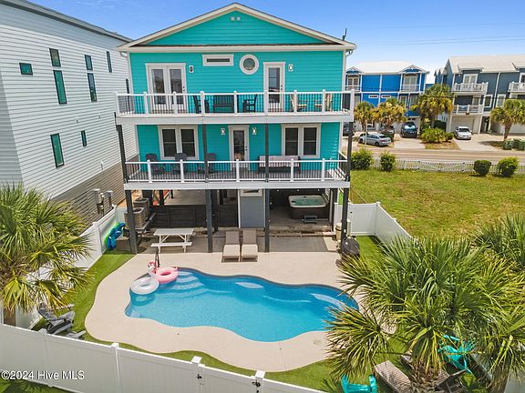 Absolutely fantastic location to vacation with family and friends, rent out for great rental income or live full time in Kure Beach.  This single family home is directly across from the beach access.  Not only is it easy to get to the beach with all the toys and towels, the views are fantastic.  This 4 bedroom newer construction home (CO late 2019) also has a pool and hot tub for those days where time is limited to a quick splash and then off to Britt's Donuts.  This one owner home was built with great thought by the sellers, enjoying the beach life more and work less.  The yard has artificial turf and looks good all year round plus no mowing.  There is also a putting green for some extra fun.  LVP flooring throughout the home and LVT shower surrounds limits need for hard to maintain grout.  The Hardie Board siding is a fantastic choice for resilience in coastal regions and there are also hurricane rated windows on front of home. The home is out of the flood plain which is a cost savings with insurance.  Many more details can be accessed under documents including rental income,  elevation certificate, insurance and approx utility costs.