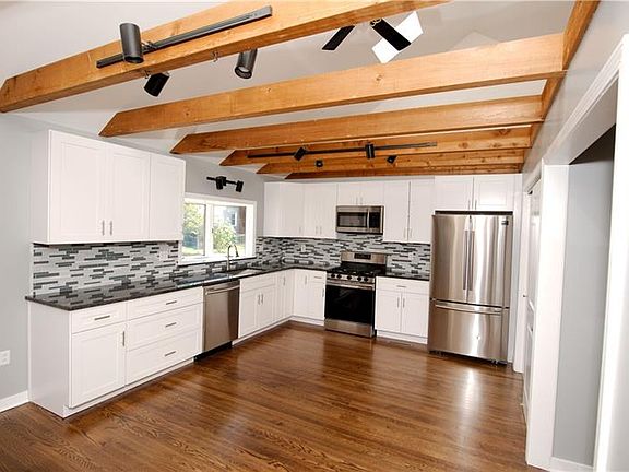 Move in ready masterpiece features new metal roof, new windows, new bathrooms, new kitchen with beamed cathedral ceiling, granite counter tops, huge pantry, new stainless steel appliance with 5 burner gas stove, bay window over kitchen sink, hardwood flooring, freshly painted inside & outside, sauna located in laundry room, beautifully landscaped, fenced rear patio area, off street parking, walking distance to YMCA, bike trail, the river & minutes to Route 28 expressway.