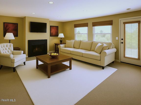 Retreat or Rental! GOLF LIFESTYLE in Prescott Country Club. MOUNTAIN VIEWS & SPACE TO SPARE! Seller Concessions. Move-In Ready townhome in a desirable golf community - ideal for full time living, weekend escapes or a rental. Enjoy mountain and golf course views from the spacious balcony and living room or relax indoors by the gas fireplace. Upper-level open concept living with 2 bedrooms and full baths - primary features dual sinks, skylight, and 2 closets - guest features walk in closet; both bedrooms open to back patio with open space view. Lower level offers a versatile bonus room with half bath & walk in closet. Deep 2-car garage-extra storage-epoxy floor. The Prescott Country Club offers golf, pool, tennis, pickleball, fitness room, restaurant and optional membership. Virtually staged and vacant photos included. The blend of comfort, functionality, and scenic beauty make this townhouse a true gem. The townhome HOA includes Exterior (excluding balcony), Roof, Gutters, Landscape Maintenance and Water, Road Maintenance, Sewer and Building Insurance, $377 per month drops to $277 in 2028 after all community roofs/exteriors are updated. EV 220 plug and soft water loop in garage. 2024-25 rental income was $2100/month. 2025 upgrades: Covered balcony rebuilt, and weatherized, exterior paint and new roof completed 2025.