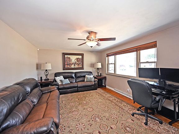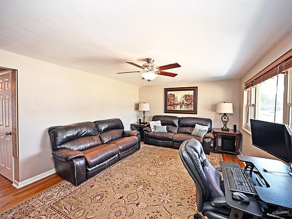 This wonderful all-brick ranch truly has it all! Nestled in a sought-after neighborhood where homes rarely come available, it offers 3 spacious bedrooms, fresh paint, and gleaming hardwood floors that make the space light and bright. Enjoy mornings or evenings in the beautiful screened-in patio, perfect for coffee, watching the game, or movie nights under the stars. The finished lower level features wall-to-wall carpet, a dry bar, and a rough-in bath with shower pan and commode, making it easy to add a second full bath. Updates include newer HVAC, electric panel, and roof (approx 8 years old), plus a newly landscaped yard with privacy fence, newer concrete driveway and front porch, and an oversized 2-car garage.