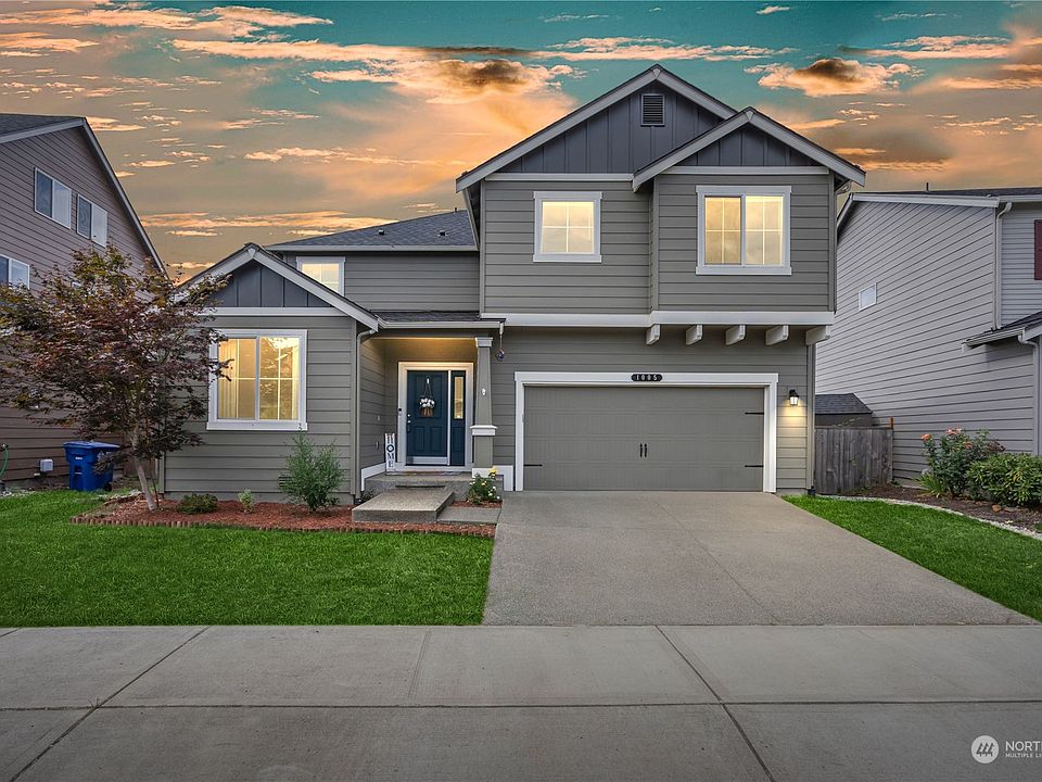 Price Improvement! Welcome to your future in quaint Orting! Get ready to fall in love with this open-concept beauty. Picture yourself sipping morning coffee on the charming porch, staying cool with central AC, and whipping up delicious meals in the modern kitchen with granite countertops and a spacious island. With 5 bedrooms, 3 full baths, including a luxurious primary suite with a generous walk-in closet, and Large Bonus Room upstairs, you'll have plenty of space for everyone! Step outside to the fenced yard, tinker in the oversized 2 car garage, and breathtaking Mt. Rainier views. "Welcome home!"