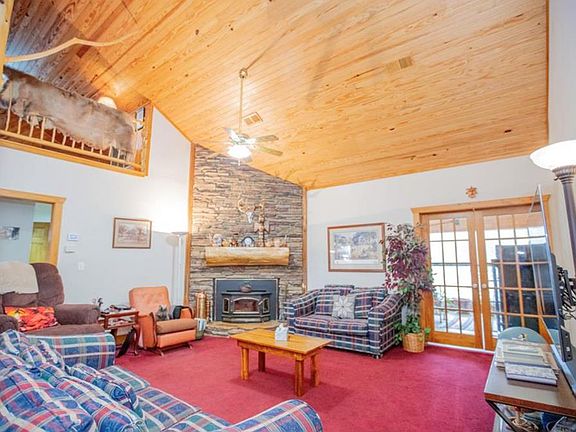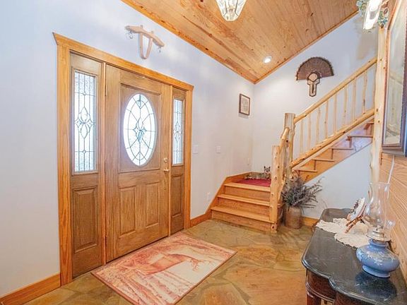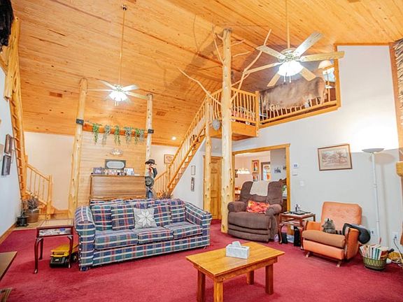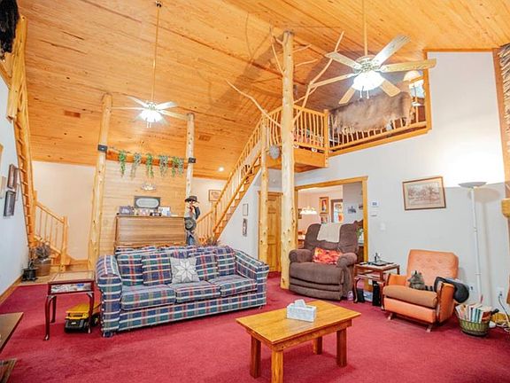 This one of a kind rustic home is a delight. It was uniquely designed by the owner. The features are amazing. There is a tree in the living area that supports the upper floor. The floors are beautiful pine. There are a total of 3 bedrooms and 3 baths. The master has a tray ceiling and the master bath is sure to delight. Enjoy the sunporch in the mornings with a cup of coffee. The home can be purchased with the 10 acres included here or with a total of 320 acres at $799,000. The area in the rear of the residence is fenced for horses with a hay barn. Call today because this is a country paradise.