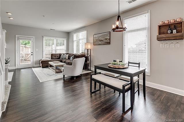 This end unit townhouse will surely impress you with updates galore!! Walk through the front door, you will be swoon by the bright open floor plan, 9ft ceilings, updated kitchen (granite countertops, tile backsplash, cabinets have been refaced with new hardware and soft close, stainless steel appliances), laminate wood floor, new tiles around working fireplace, and neutral paint. Upstairs you will find 2 bedrooms with oversized closets and 2 bathrooms. The master bathroom has a gorgeous new dual sink vanity and spa-like tile shower. This Dilworth location is unbeatable with walking distances to Freedom Park, restaurants, shops...minutes from both Uptown and South Park! **MULTIPLE OFFERS, calling for highest and best offer by noon June 11th**