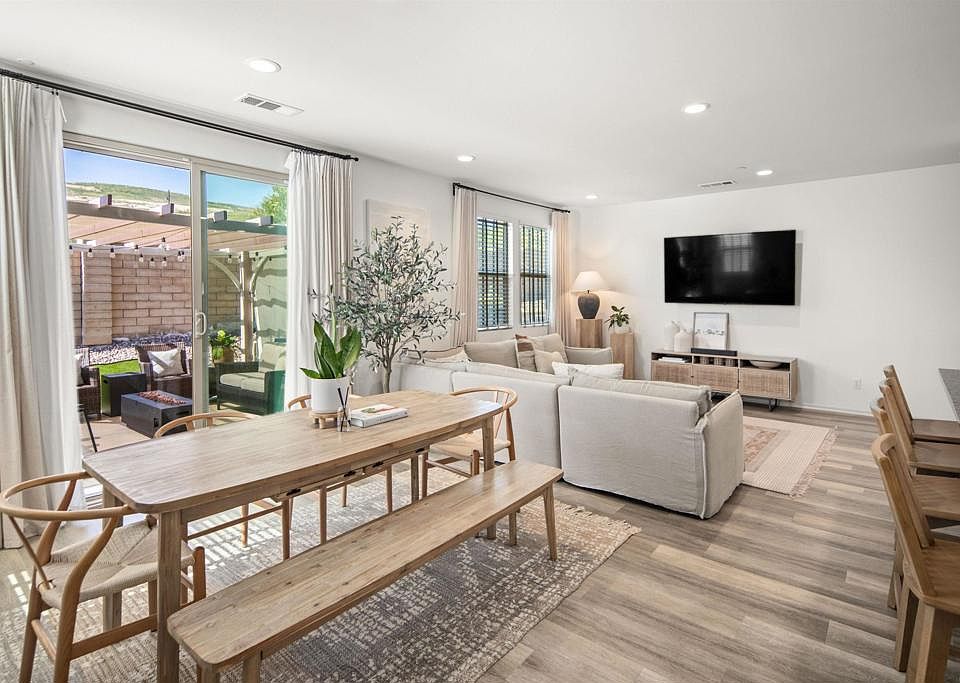 Discover this charming 3-bedroom, 2.5-bathroom townhome ideally situated in the serene Village of Escaya. Nestled on a tranquil lot, this home boasts an inviting open floor plan. The kitchen features elegant granite countertops, complemented by matching appliances and pristine white cabinets. Seamlessly connecting to the dining and living areas, it offers access to the expansive backyard, a convenient downstairs bathroom, and an attached 2-car garage. Upstairs, a spacious loft awaits along with three bedrooms, including a primary suite complete with a walk-in closet and an ensuite featuring double sinks and a shower. The generously sized secondary bedrooms share access to a full bathroom equipped with dual sinks and a tub. Additionally, a dedicated laundry room provides ample space for a full-sized washer and dryer. Perfectly located, this unit is in close proximity to new dining options and a host of community amenities such as a pool, fitness center, recreation areas, BBQ spots, basketball court, and a sprawling playground. Don’t miss out on this exceptional home in a prime location!
