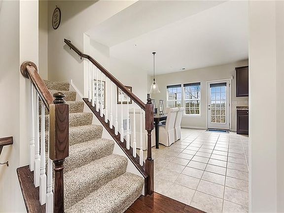 Beautiful town home-barely lived in-willing to sell furnished!! Gourmet kitchen with island, pantry, stainless appliances, ceramic tile floors, recessed lighting & door to trex deck. Eat in kitchen/dining room with lots of natural light & tile floor*Huge living room with hardwood floors*Master bedroom has walk in closet, and master bath with double sinks, soaking tub & separate shower *2nd floor laundry*Finished basement walks out to level yard that backs to woods!*SO many amenities-clubhouse, 2 swimming pools, fitness center, tanning suite, movie theater, indoor basketball court, car wash, playground and more! Grass cutting/yard maintenance included.
