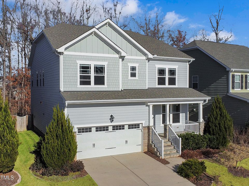 Nature awaits! Only 1.6 miles to Wake Forest's charming Downtown and minutes from the famous Wake Forest Reservoir, Community Park, and School. This beautifully maintained 5 BR/3 BA home is positioned near a cul-de-sac, directly across from a tranquil open grass communal space- the benefits of living in nature are right at your finger tips! Stroll down quaint streets to the stunning community pool, enjoy the wooded views on your screened in porch that overlooks a FENCED YARD, or step out into the open green space directly across the street. Luxury updates recently added--NEW paint and NEW fixtures. Open kitchen/living room area that boasts custom shelving and open floorplan that is a dream for hosting. The first floor features a bedroom or office space and full bath off the spacious two car garage, complete with custom shelving. A rare gem in this sought after community, the creative possibilities living in this charmer are endless.