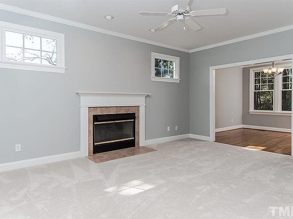 Charming home in a quiet neighborhood. NEW carpet, fresh paint, and NEW bamboo flooring in the kitchen, cabinets have been re-done, floor to ceiling cabinets, granite countertops, SS appliances, gas fireplace hardwoods in the dining room, HUGE bonus room, deck boards have been replaced. Windows galore in this home, tons of natural light. This home has been gone through top to bottom. It is move in ready! Raleigh address without the city taxes and a very low HOA. Large fenced in yard with mature trees.