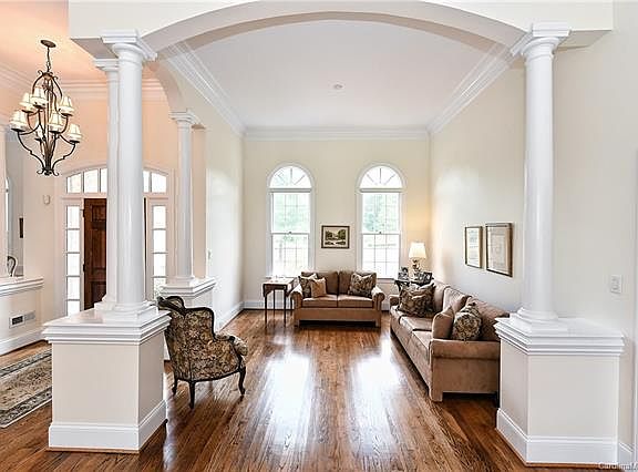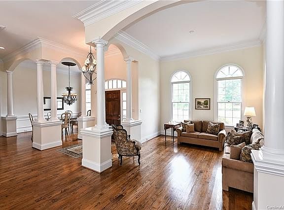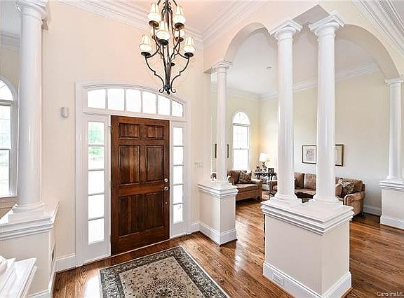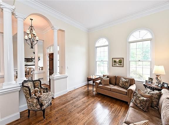 Amazing ranch home located in the gated community of Quintessa! Features of this custom built home by Bonterra include: full brick exterior, 3 car side load garage, .94 acre lot, walk-in attic on 2nd floor could easily allow expansion, 3 bedrooms, 3.5 baths, hardwood floors throughout most of home, formal living & dining rooms with moldings, master bedroom w/huge sitting room/office, great room w/13 ft ceiling,kitchen offers 42 inch raised panel cabinets, under cabinet lighting, tile backsplash, Corian countertops, Kitchen-aid stainless appliances, counter depth refrigerator, gas cooktop w/ 5 burners, wall oven, microwave/convection oven & computer niche, network ready with 4 data drops on main level and one on upper level, all bedrooms have private baths, master bedroom remodeled w/seamless glass shower, dual vanity, & Jacuzzi tub, large deck overlooking private lot and Weddington schools!! *Dining room chandelier does not convey.